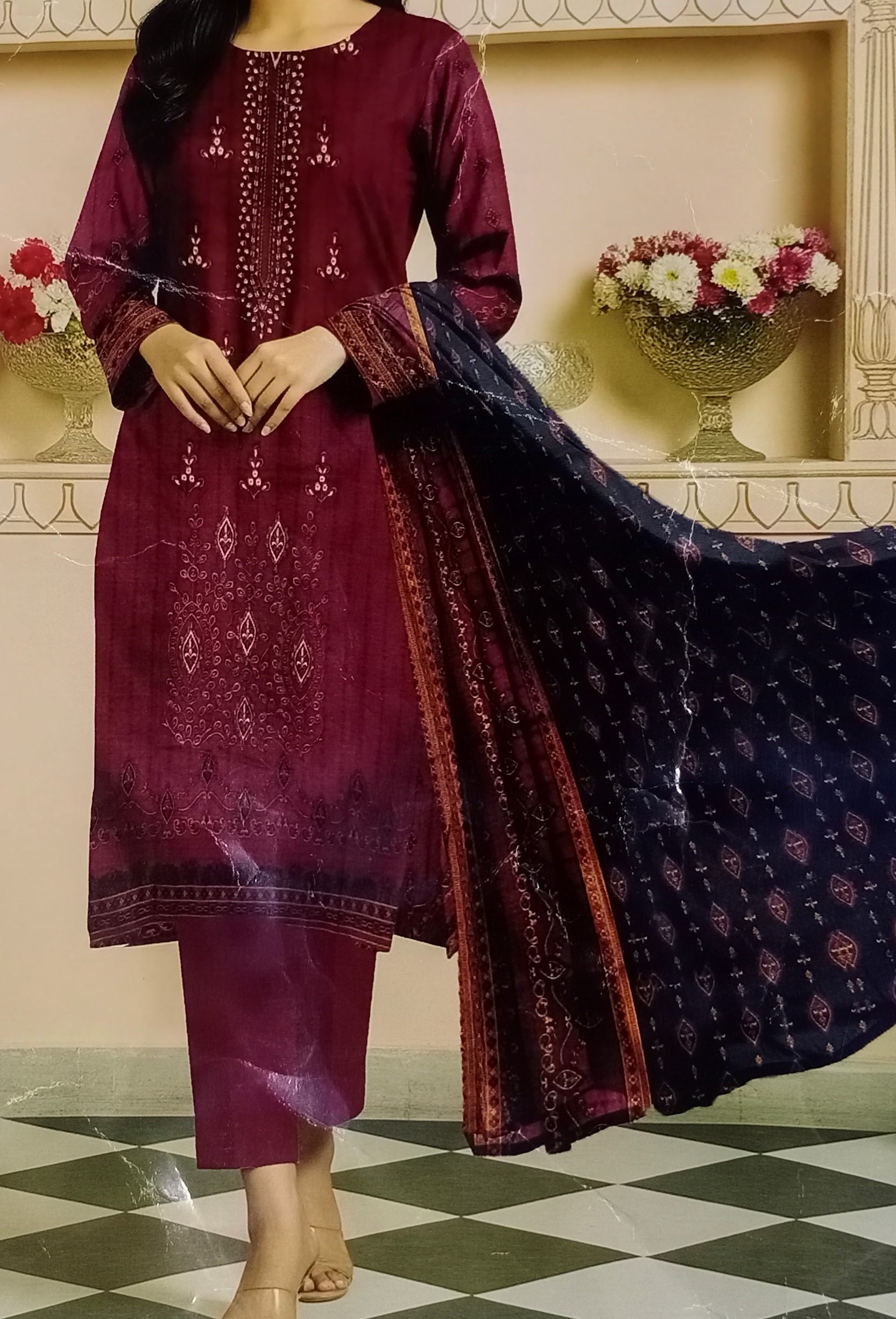 Strongly resemble the designs found in 3-Piece Unstitched Printed Khaddar Suits, especially those popular in Pakistan for the winter season.