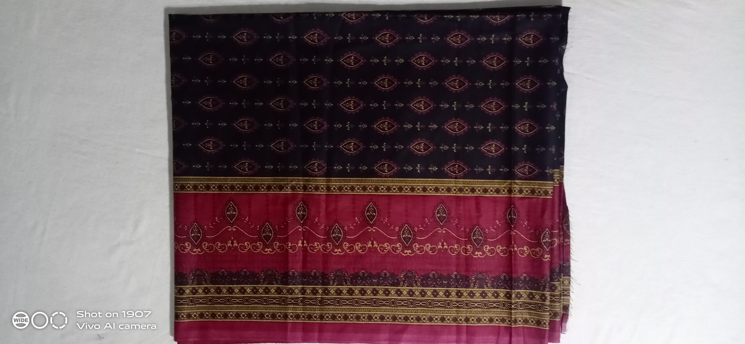 A significant portion is a dark color, possibly black or very dark navy, with a small repeating pattern.