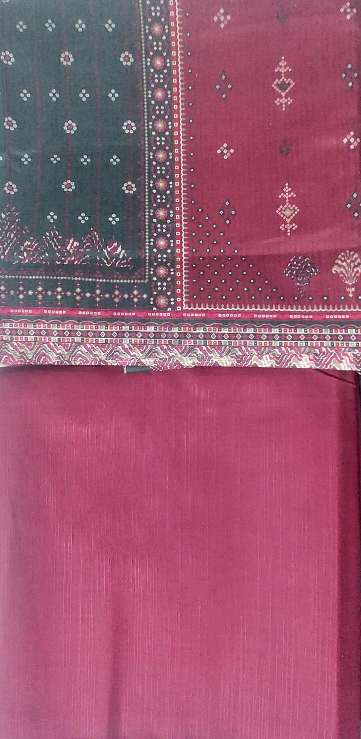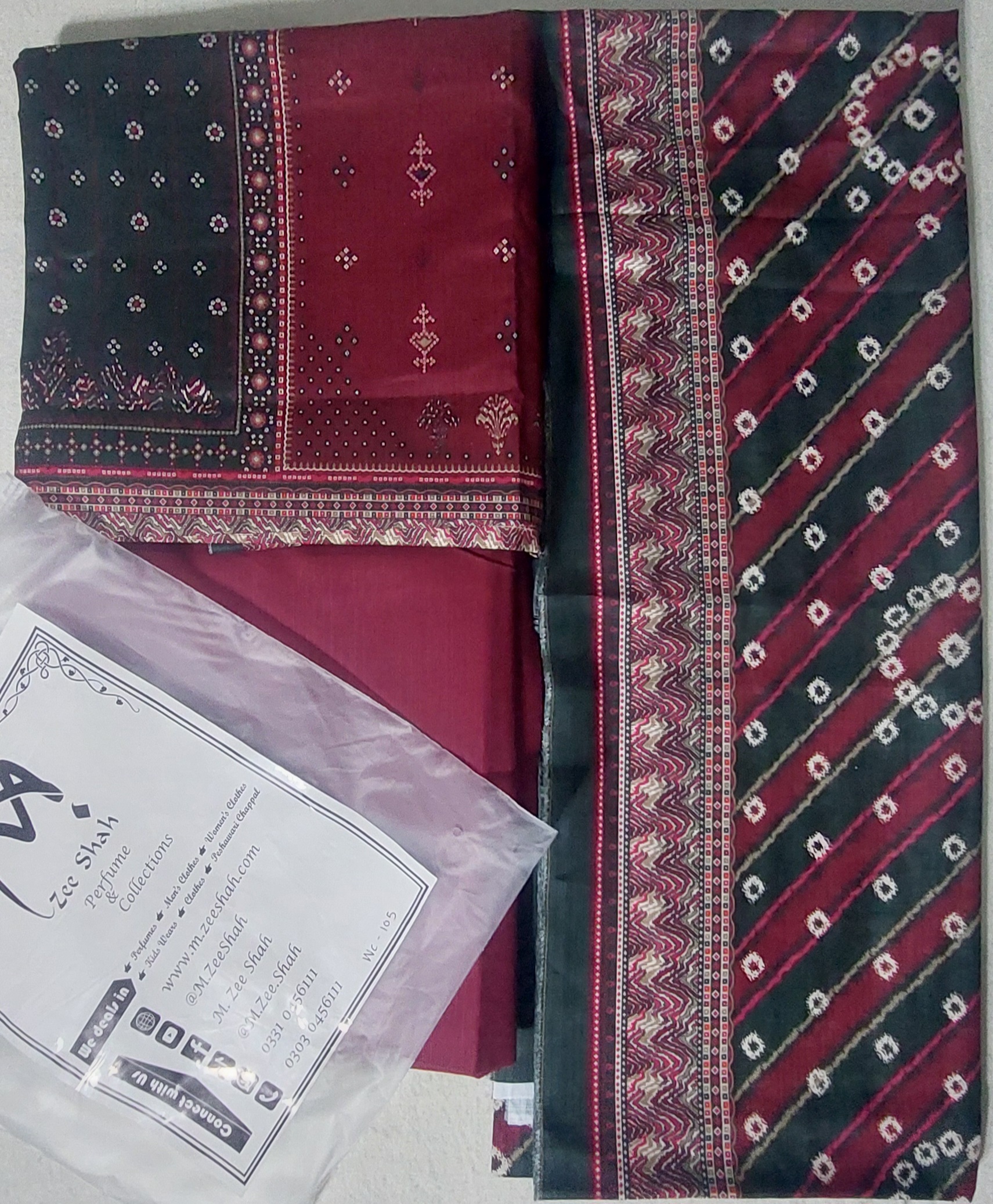 This is 3 piece unstitched printed khaddar winter suit, and the style and color combination,