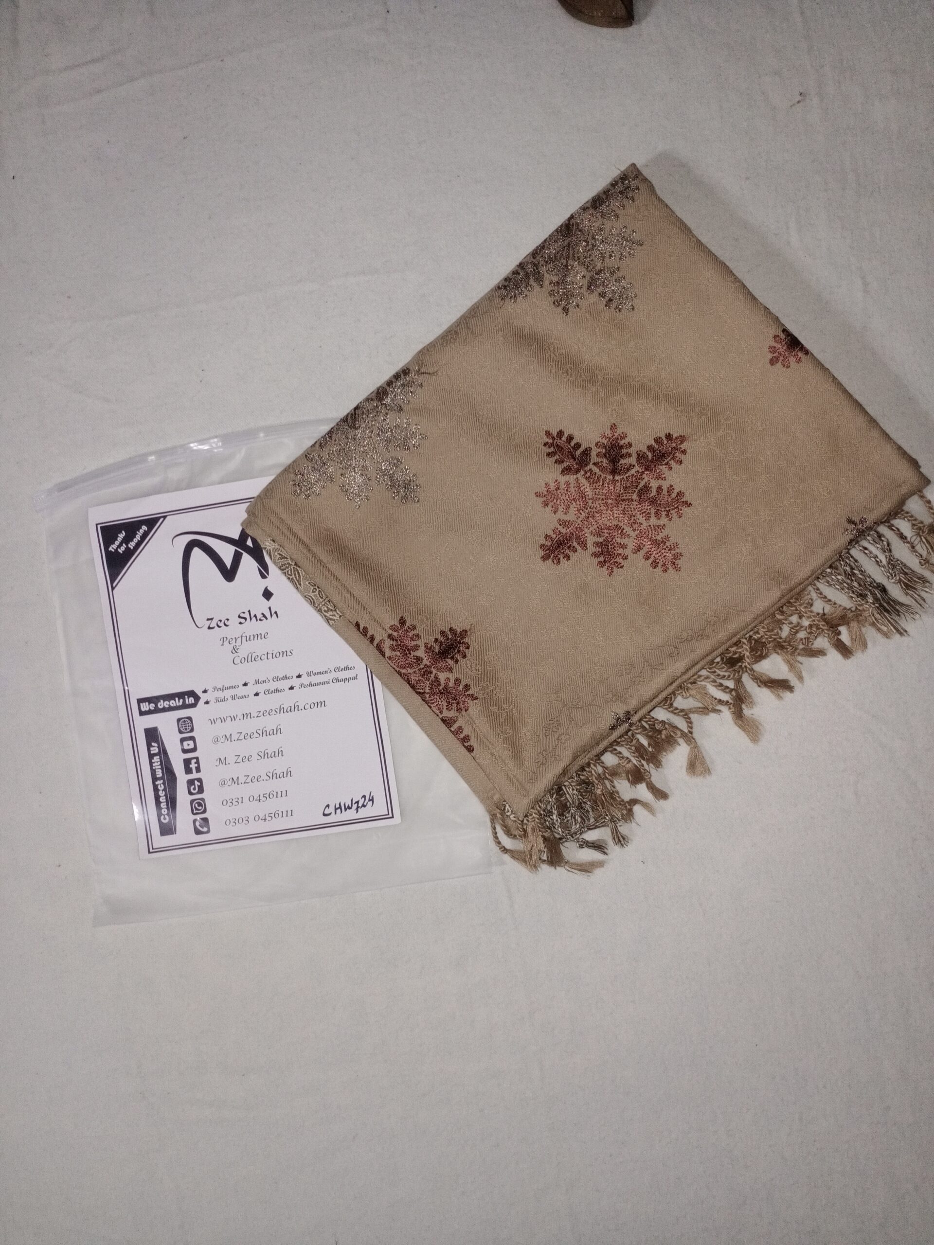 Fringe: It has a short, tied fringe (tassels) on the end visible, which is a classic finish for shawls.